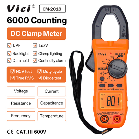 VICI CM-2018 AC DCデジタルクランプスタイルTrueRMSNCVローパスフィルタークランプメーター、6000桁ディスプレイ