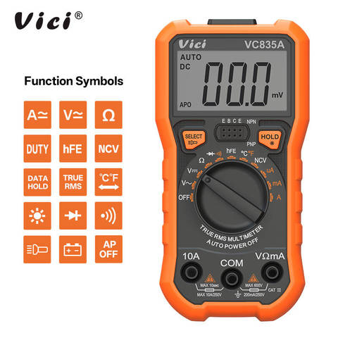 Vc835 AC dc vicimeter 600v 20mΩ טרנזיסטור דיודה והמשכיות מדידות טמפרטורה T-RMS מולטימטר