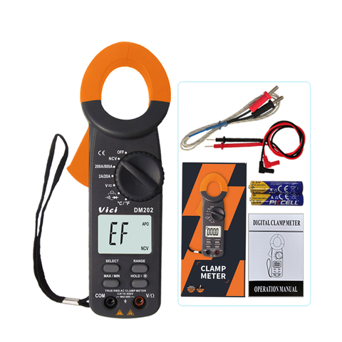 Vicimeter DM202 Corriente CA Voltaje CC Temperatura Diodo Pruebas de continuidad 2000 recuentos Pinza amperimétrica